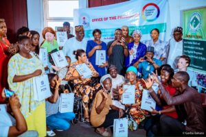“Earlier this year, my office facilitated the inclusion of some women with disabilities In the National Business Skills Development Initiative (NBSDI) recently launched by the Small and Medium Enterprises Development Agency of Nigeria (SMEDAN) where they were trained in various vocational skills and empowered with startup kits and funds to start their businesses.”
