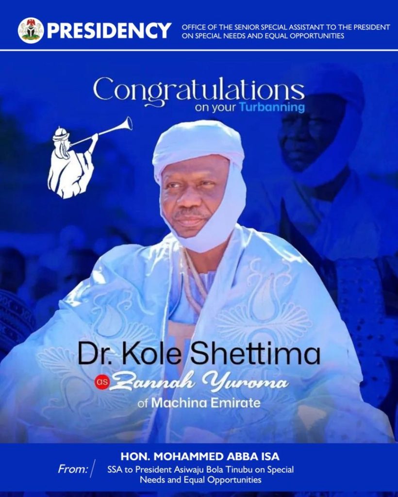 The Senior Special Assistant to the President on Special Needs and Equal Opportunities, Hon. Mohammed Abba Isa, has congratulated the African Director of the MacArthur Foundation, Dr. Kole Ahmed Shettima, on his turbaning as Zannah Yuroma of the Machina Emirate in Yobe State.